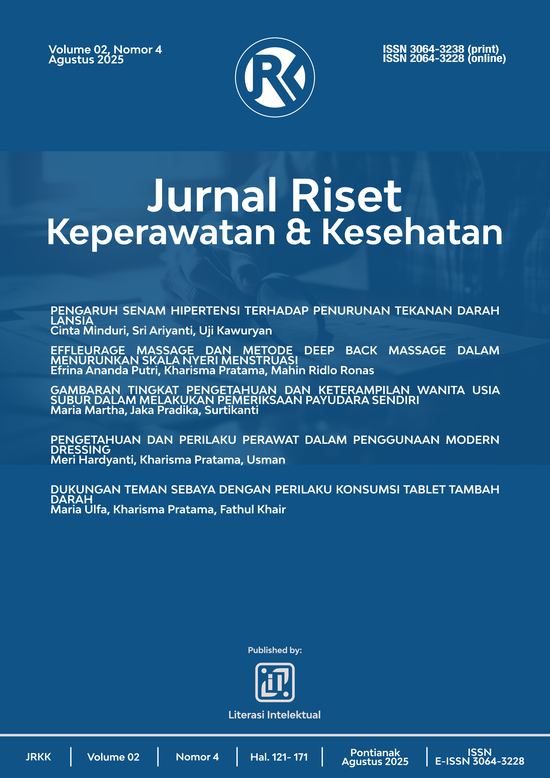 Vol. 2 No. 5 (2025)Jurnal Riset Keperawatan dan Kesehatan (JRKK) Publikasi ilmiah yang memuat artikel-artikel penelitian, kajian, dan ulasan dalam bidang keperawatan dan kesehatan. Jurnal ini berfungsi sebagai platform untuk mendiseminasi hasil penelitian terbaru yang relevan bagi para akademisi, praktisi, dan pembuat kebijakan di bidang kesehatan.