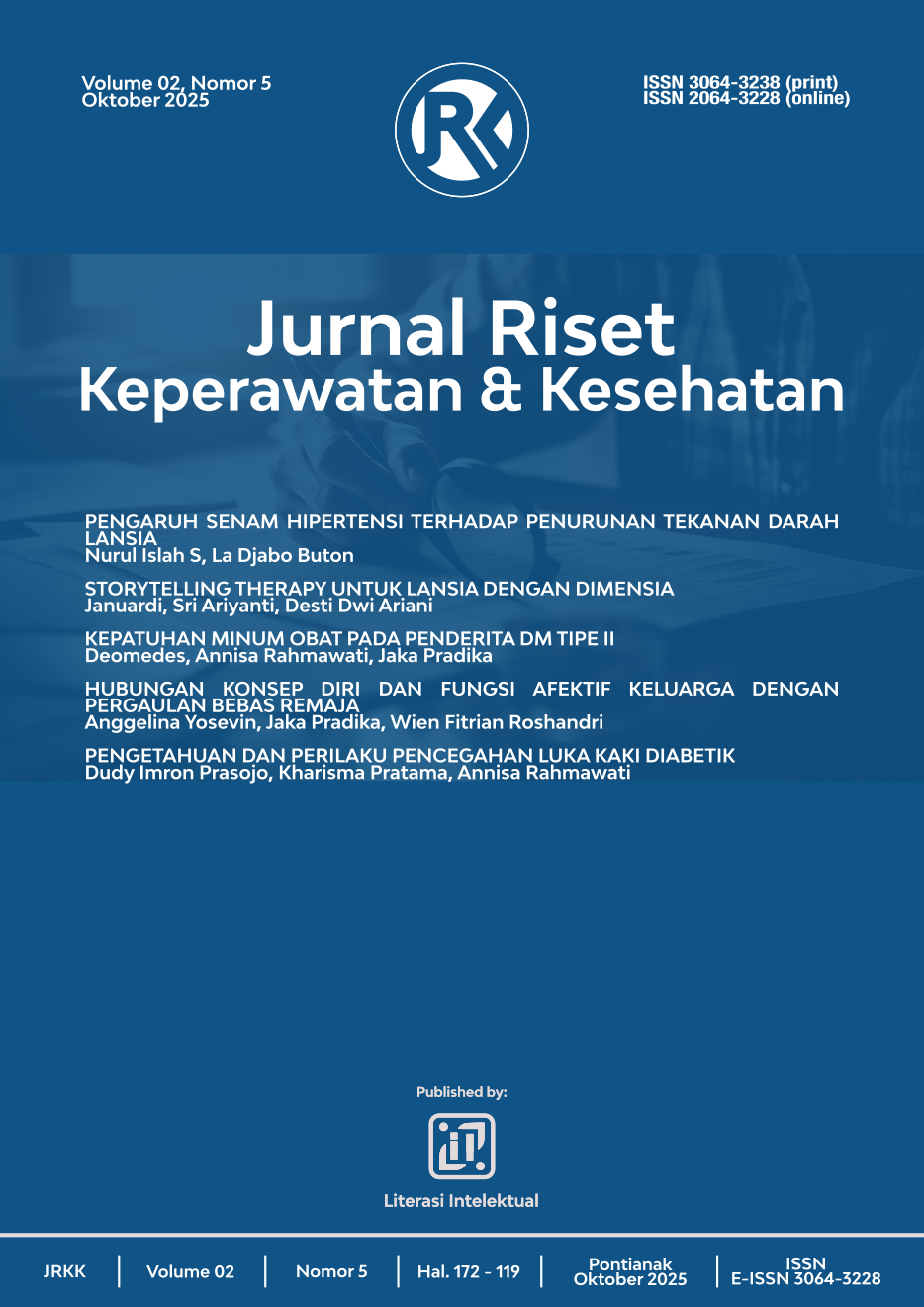 Vol. 2 No. 6 (2025)Jurnal Riset Keperawatan dan Kesehatan (JRKK) Publikasi ilmiah yang memuat artikel-artikel penelitian, kajian, dan ulasan dalam bidang keperawatan dan kesehatan. Jurnal ini berfungsi sebagai platform untuk mendiseminasi hasil penelitian terbaru yang relevan bagi para akademisi, praktisi, dan pembuat kebijakan di bidang kesehatan.