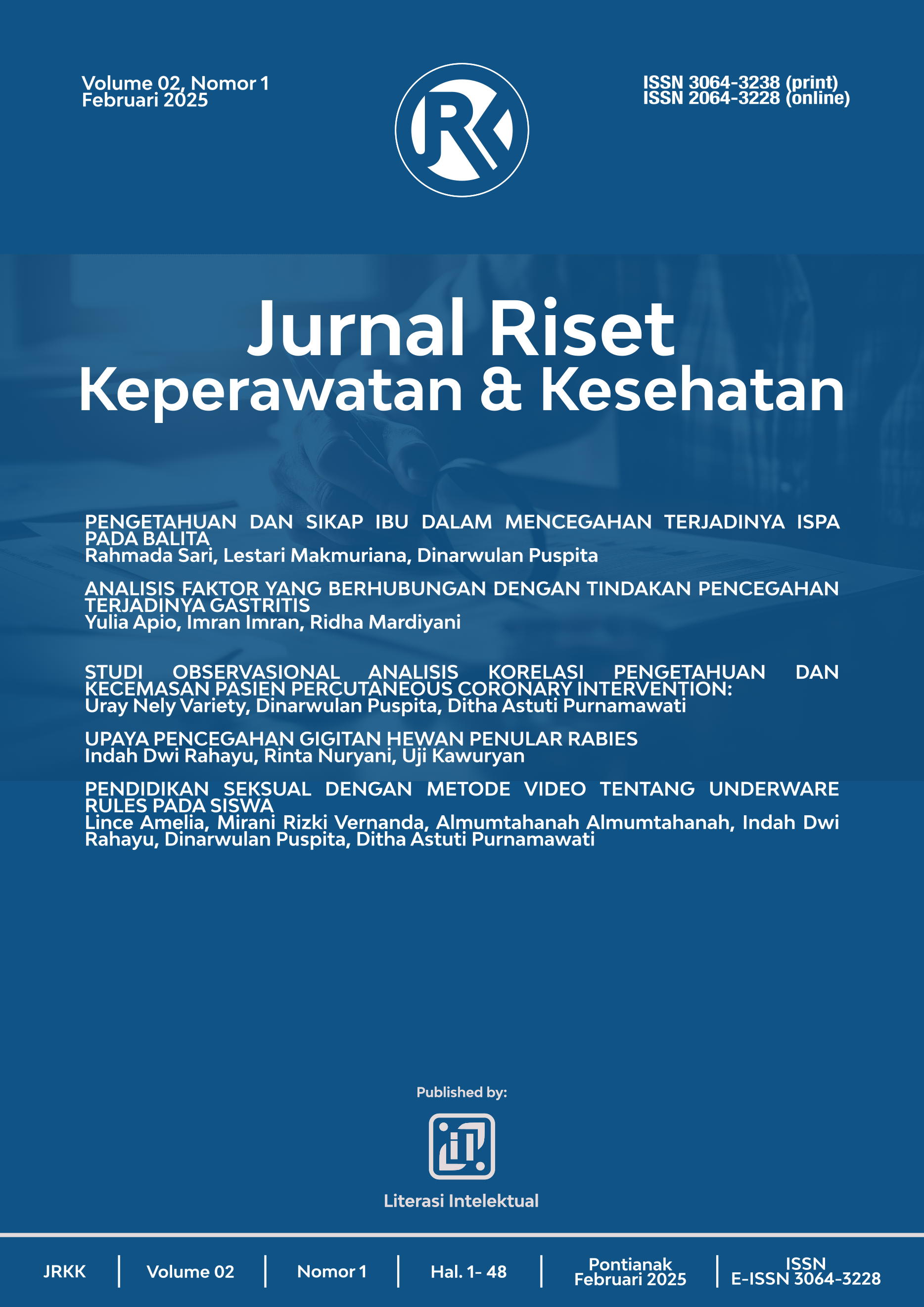 Vol. 2 No. 2 (2025)Jurnal Riset Keperawatan dan Kesehatan (JRKK) Publikasi ilmiah yang memuat artikel-artikel penelitian, kajian, dan ulasan dalam bidang keperawatan dan kesehatan. Jurnal ini berfungsi sebagai platform untuk mendiseminasi hasil penelitian terbaru yang relevan bagi para akademisi, praktisi, dan pembuat kebijakan di bidang kesehatan.